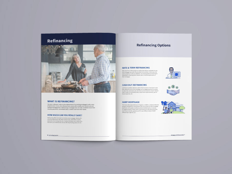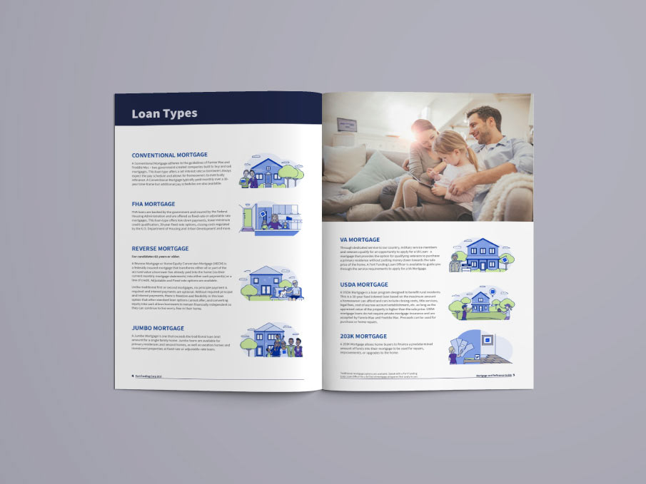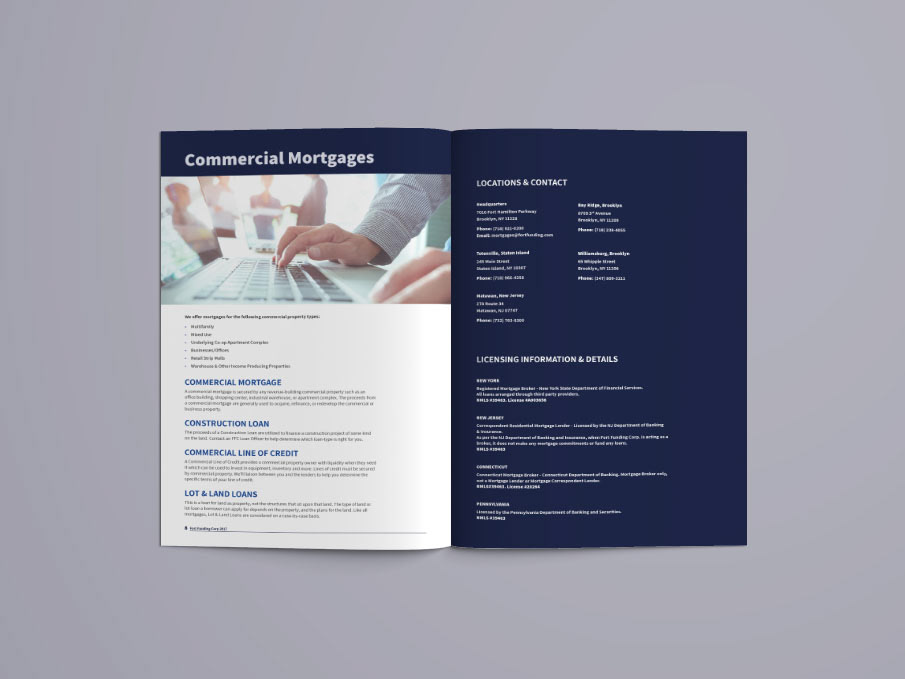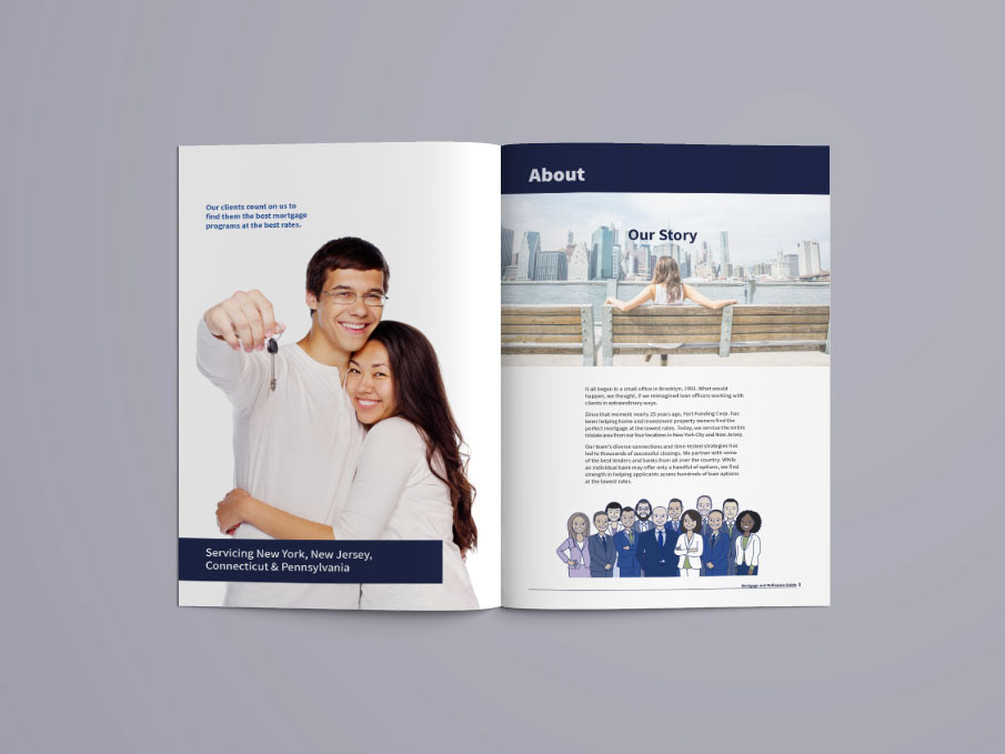 Mortgage guide brochure detailing deals available to customers for Fort Funding Corp., a mortgage company based in Brooklyn, New York.